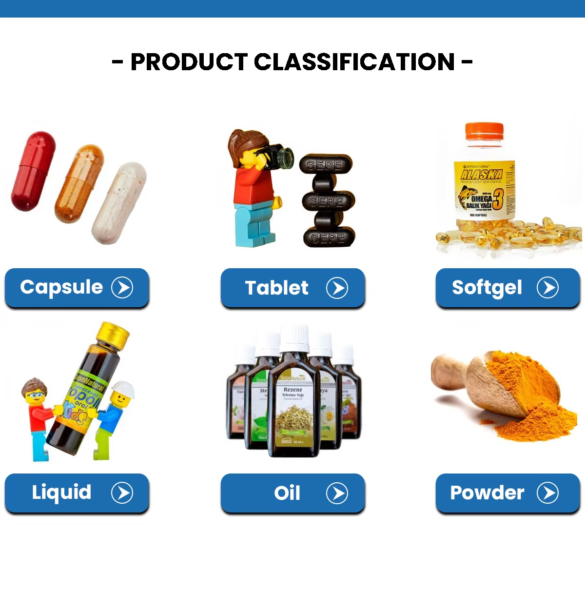 Main categories: Capsule,Tablet,Syrup,Gummy,Liquid Shot